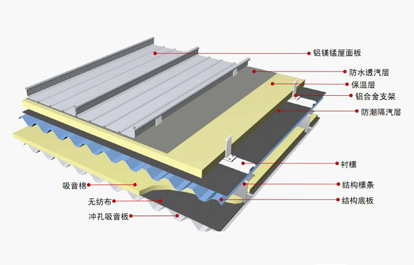 屋面板適用材料:鋁鎂錳板、鍍鋁鋅板、陽極氧化鋁板、鈦鋅板、銅合金板